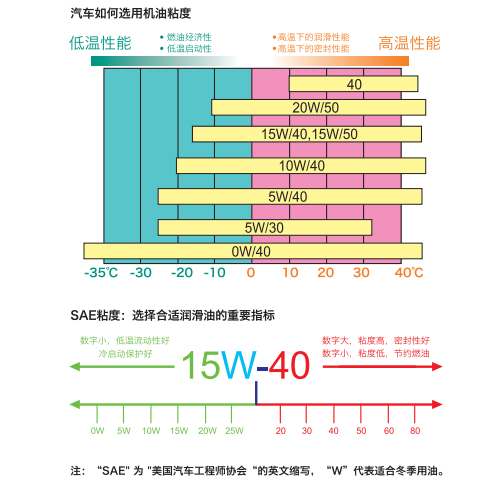 W前面數(shù)字代表:5W適用外部低溫-30℃、10W適用外部低溫-25℃、15W適用外部低溫-20℃、20W適用外部低溫-15℃;
