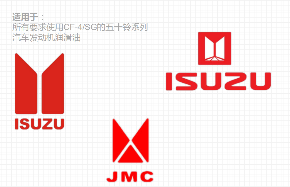 適用于所有要求使用CH-4/SJ的五十鈴系列汽車(chē)及公路用輕型及重載卡車(chē)發(fā)動(dòng)機(jī)潤(rùn)滑。