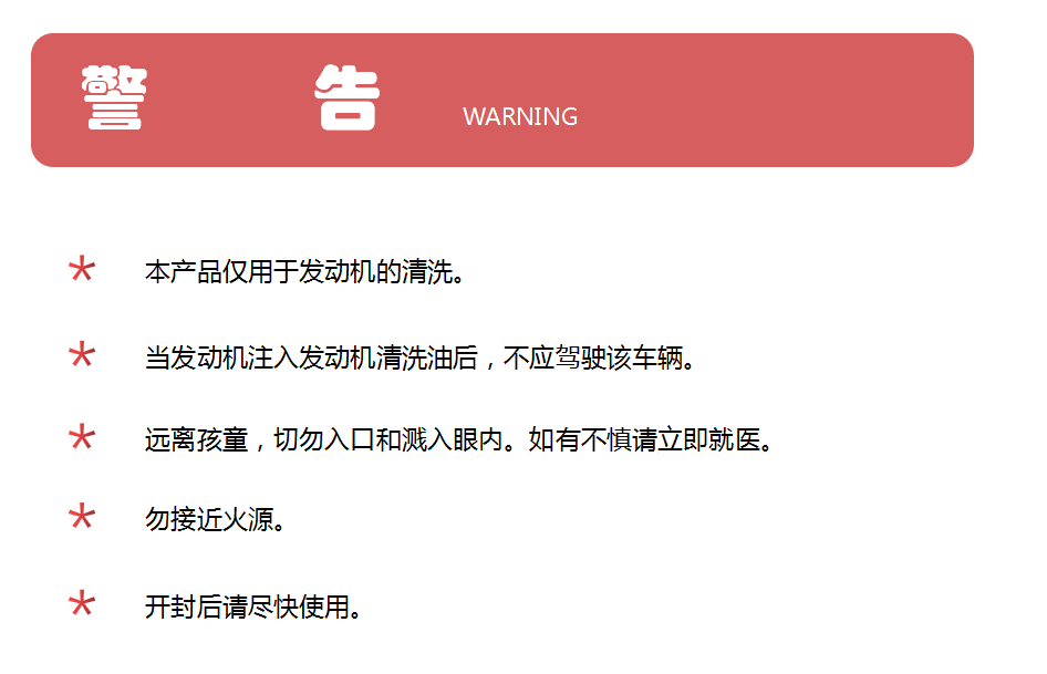 養(yǎng)護類型:發(fā)動機清洗油 </br>