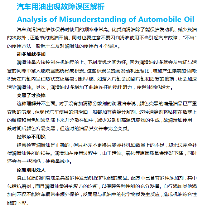 汽車(chē)用油出現(xiàn)故障誤區(qū)解析